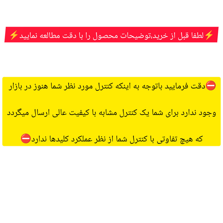 ⛔لطفا اگر کنترلتون مطابق تصویر نیست شانسی بخاطر مارک اقدام به خرید نکنید،ظاهر کنترل مهم بسیار میباشد،اگر شک دارید حتما قبلش با ما ارتباط برقرار کنید تا متضرر نشید