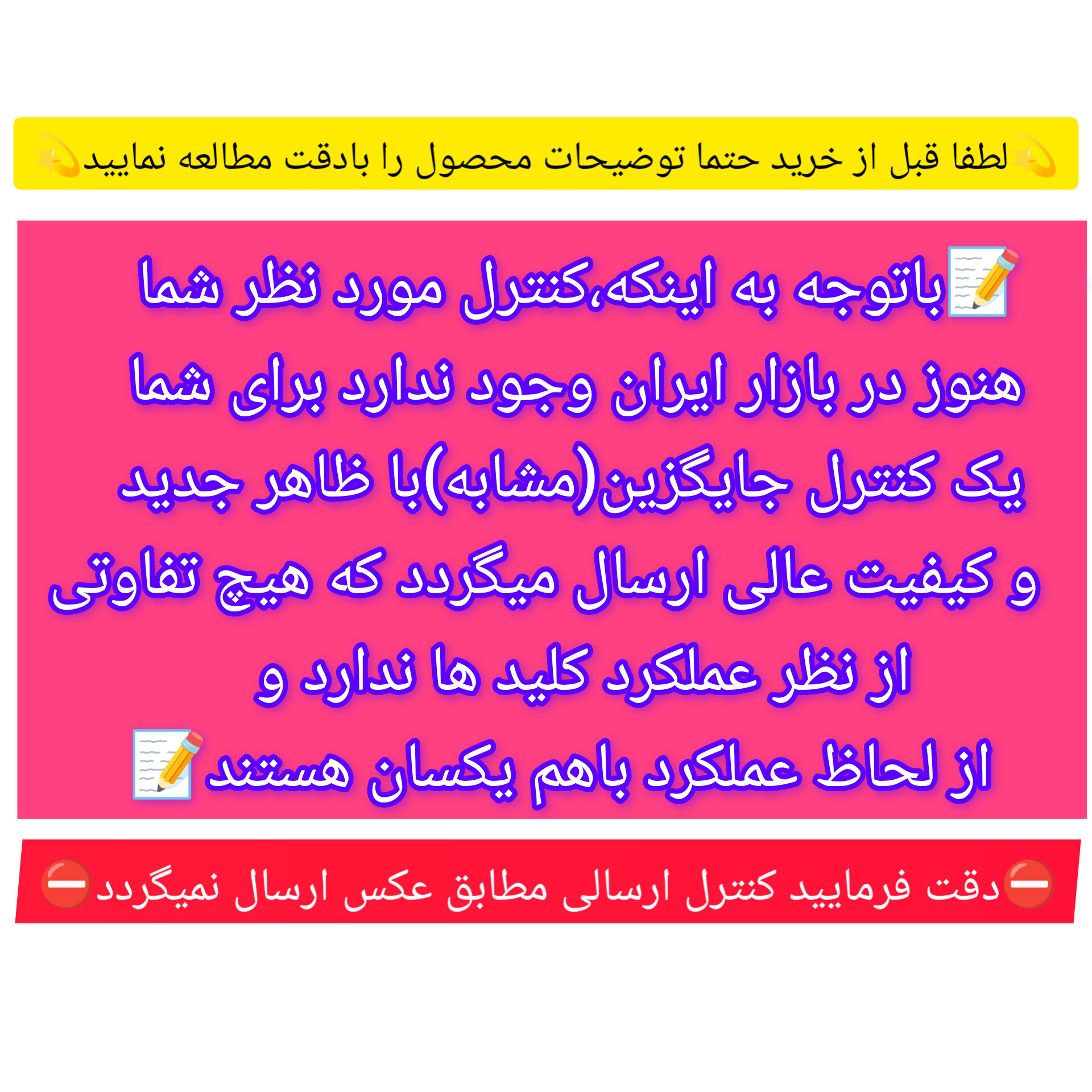 ⛔دقت فرمایید باتوجه با اینکه این کنترل هنوز به بازار عرضه نشده است برای شما یک کنترل مشابه با عملکرد یکسان ارسال میگردد(کنترل مطابق تصویر ارسال نمیگردد)